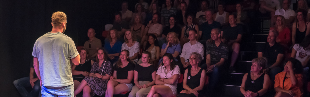 Één microfoon, grappen in razend tempo, licht op het podium en publiek. Meer is er niet nodig voor een grappige avond uit. De avonden worden gepresenteerd door een Master of Ceremonie.
